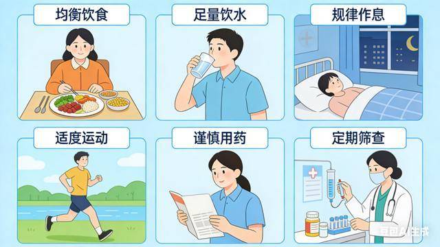 适度运动:坚持规律的中等强度运动,避免久坐不动,控制体重在正常范围内,肥胖者需逐步减重。